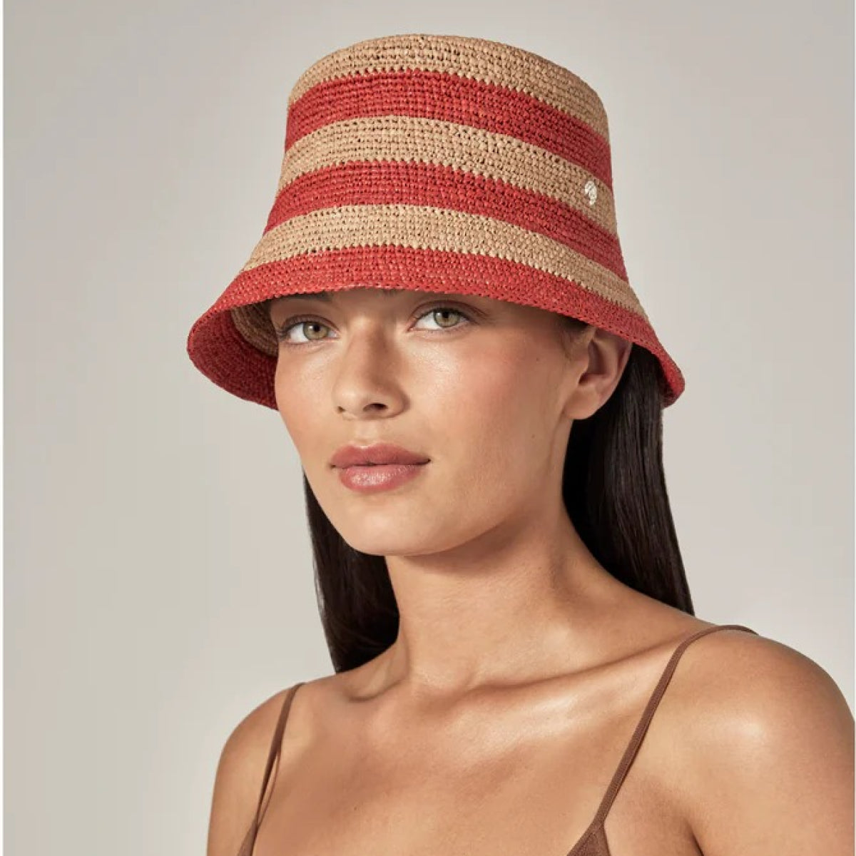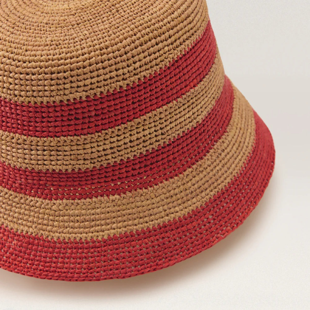 - Hand Crafted Raffia Crochet with Horizontal Stripe Contrast