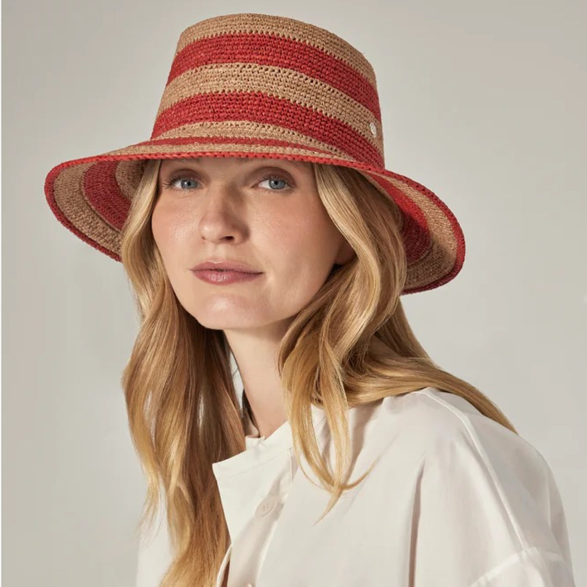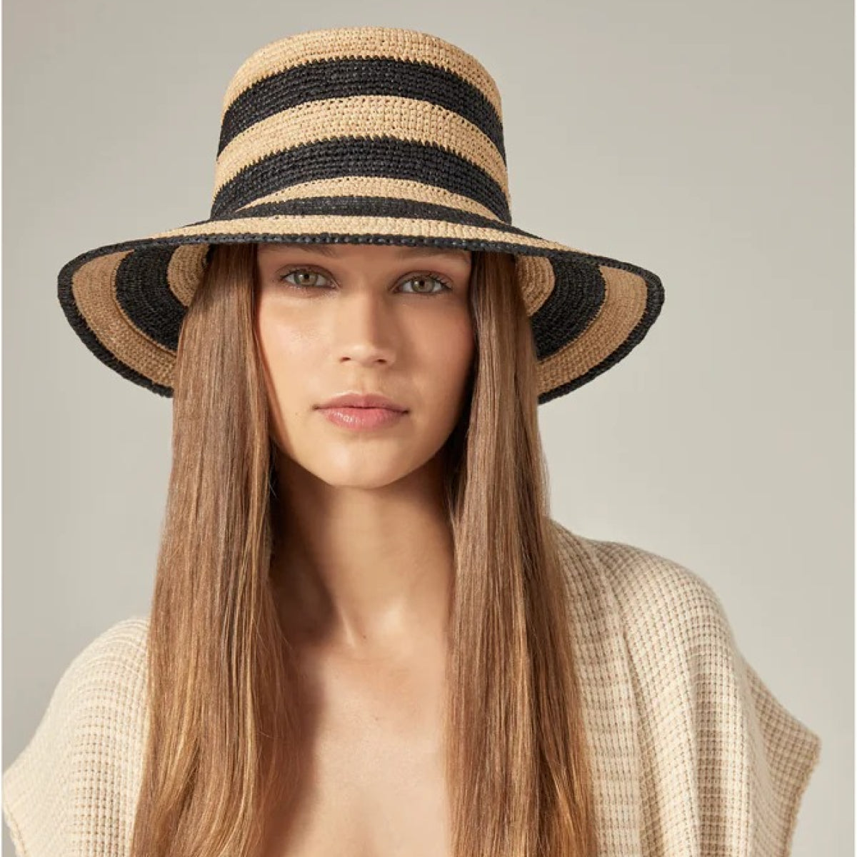 - Hand Crafted Raffia Crochet with Horizontal Stripe Contrast