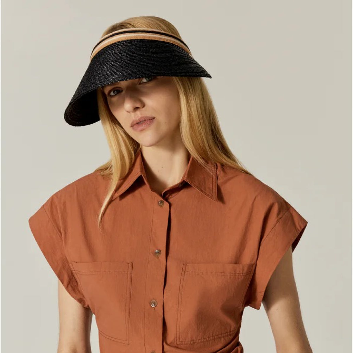 Practical and chic, the Bianca 12 visor is a must-have for sun-soaked getaways. Artisanally crafted from sustainable raffia braid, this slide-on visor silhouette features a generous 12cm brim offering enhanced sun protection. Available in iconic colourways with our signature stripe or logo elastic band.