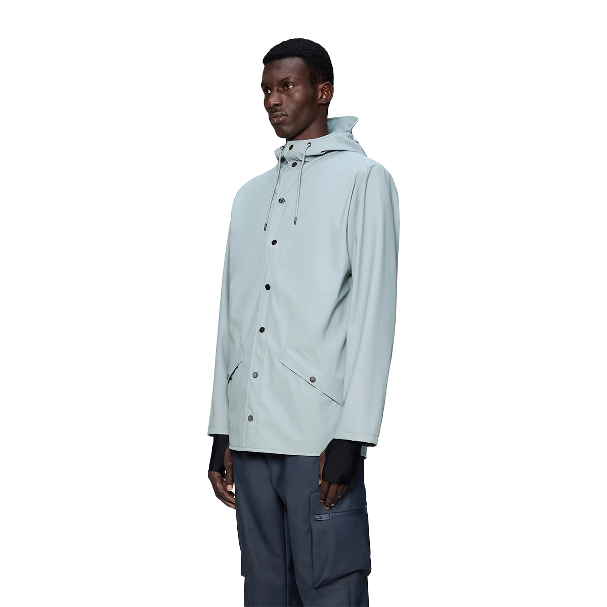 Jacket is an ever-contemporary unisex rain jacket delivering high functionality in a minimal silhouette. Features include double welded slanting flap pockets, adjustable cuffs and a fishtail hem. The look is finished with snap fastenings, under-arm eyelets, and a back yoke with concealed vents.