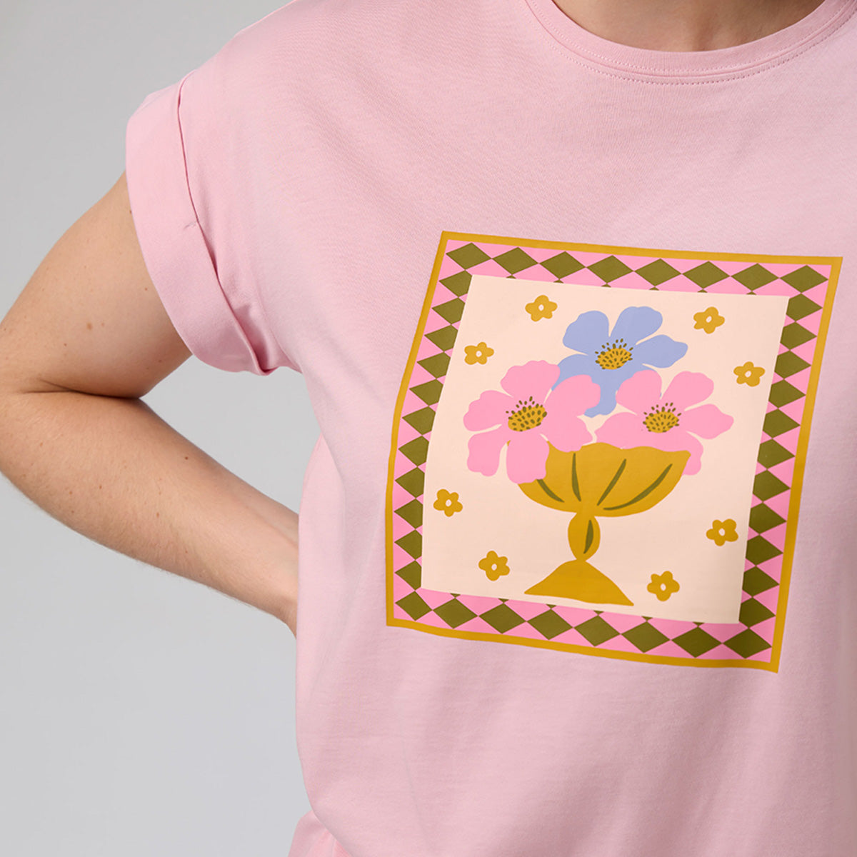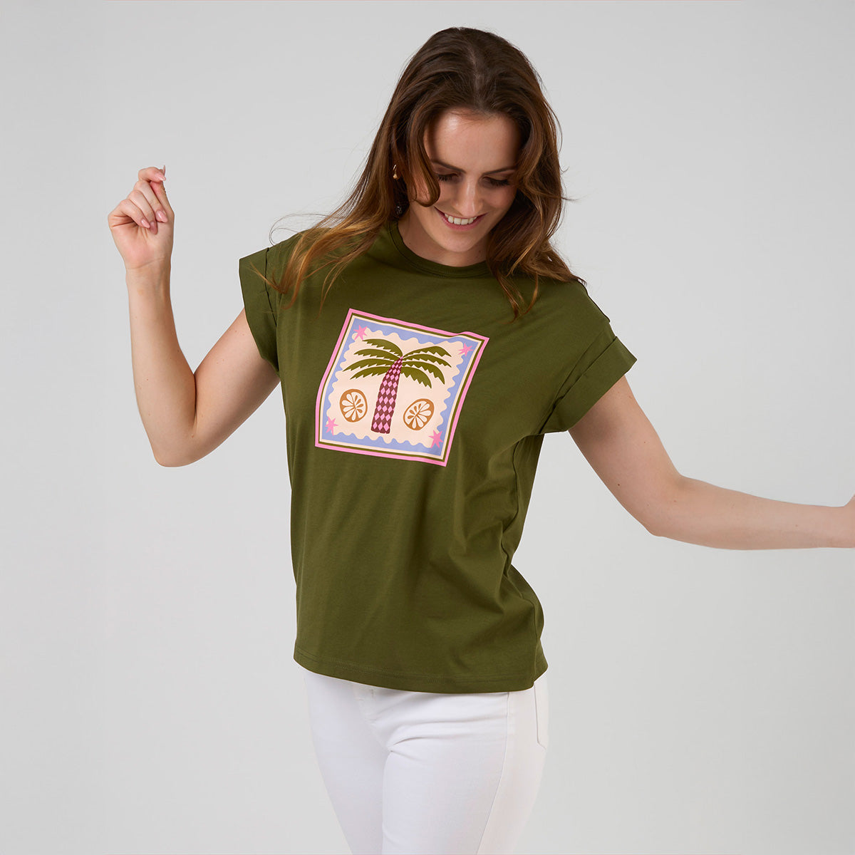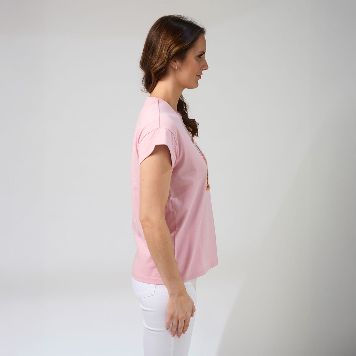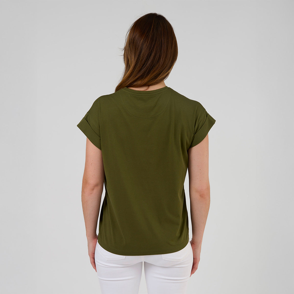 Relaxed fit crew neck t-shirt with capped sleeves.