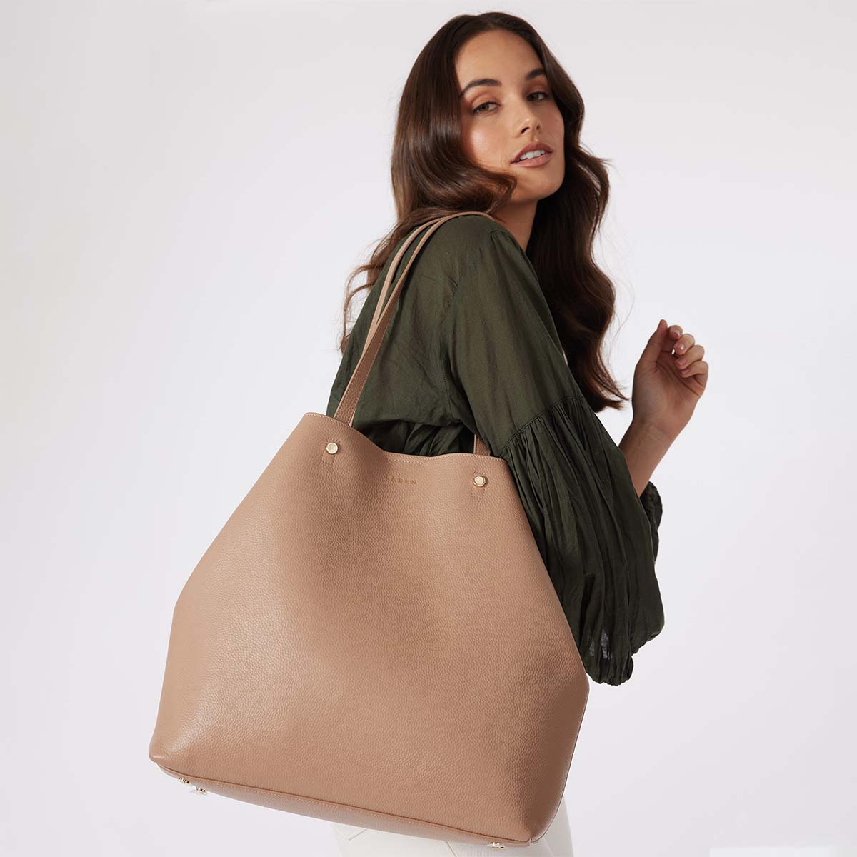 A commuter's dream; Carter is a softly structured carry-all that can be worn traditionally as a tote, or pinch the corners in for more of a bucket bag style. Carter boasts a chic, surprise-and-delight interior, she's light weight and large enough to carry lifes essentials with room to spare.