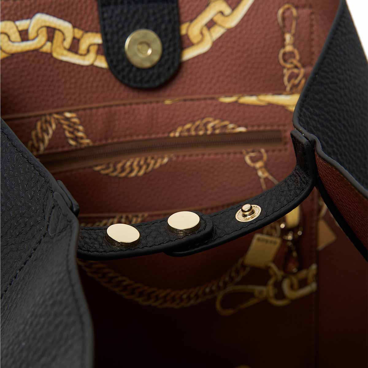 - Adjustable snap dome to close tote at sides