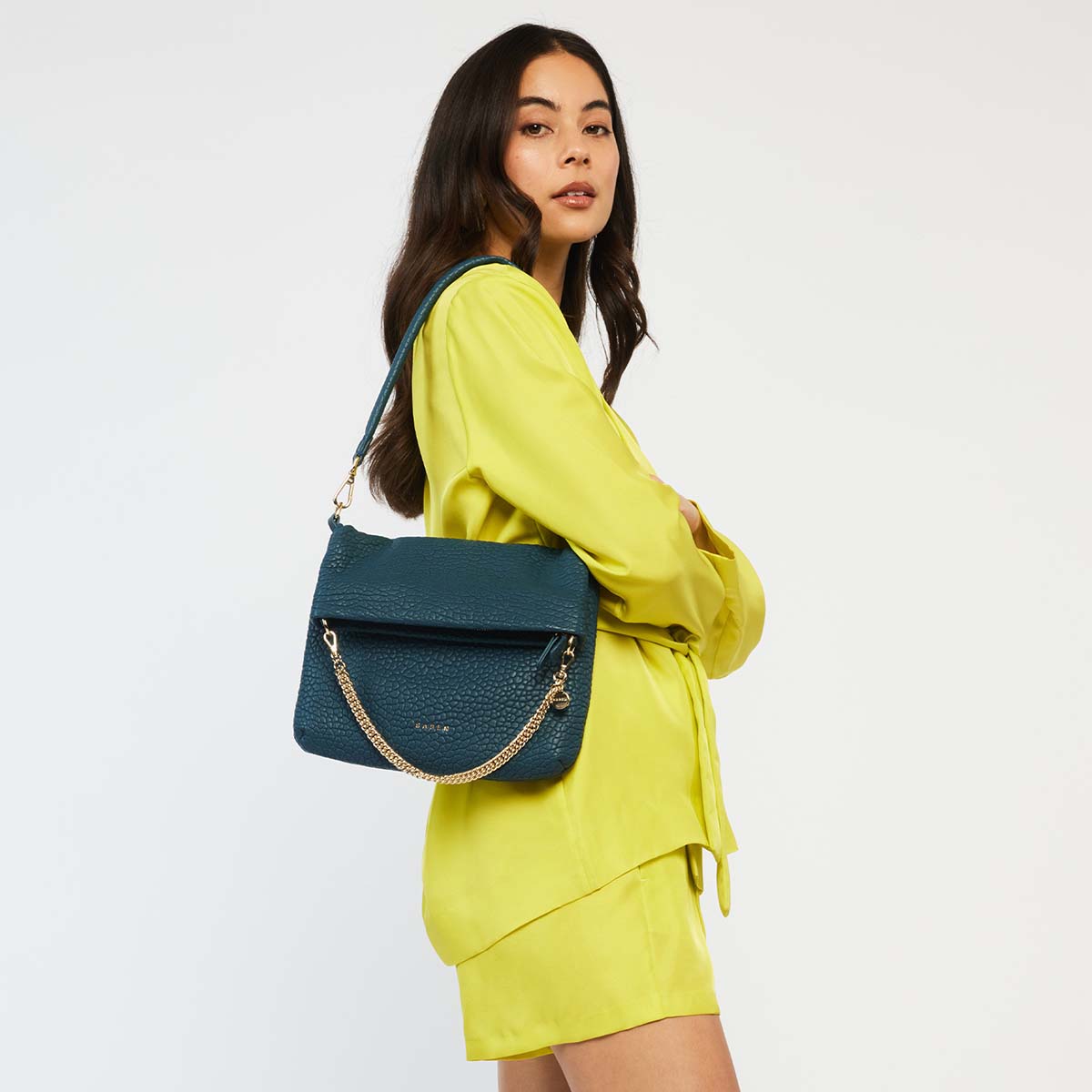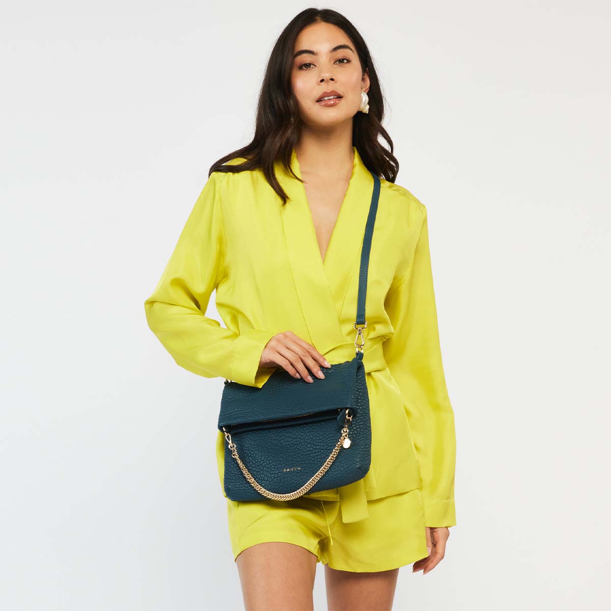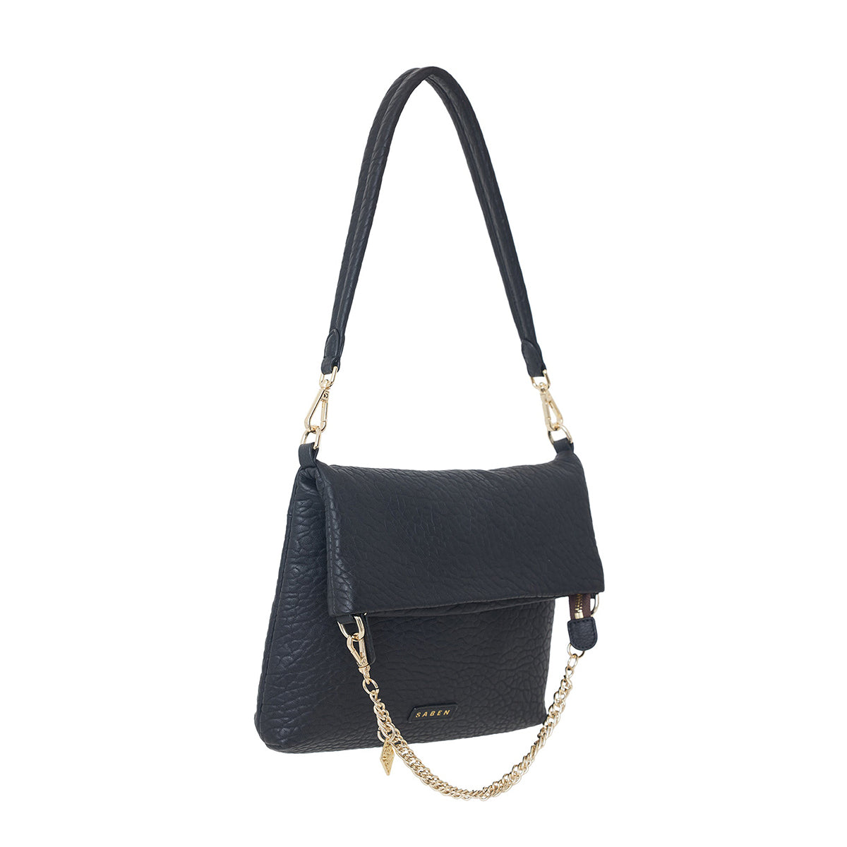 Brand new to the Saben collection, Daria is your go-to bag designed to elevate your everyday look. Made to suit your on-the-go lifestyle, Daria’s fold over flap allows you to transform her into a larger bucket style tote when you need that bit of extra room throughout the day. Daria features a shoulder strap, crossbody strap and detachable chain detail.