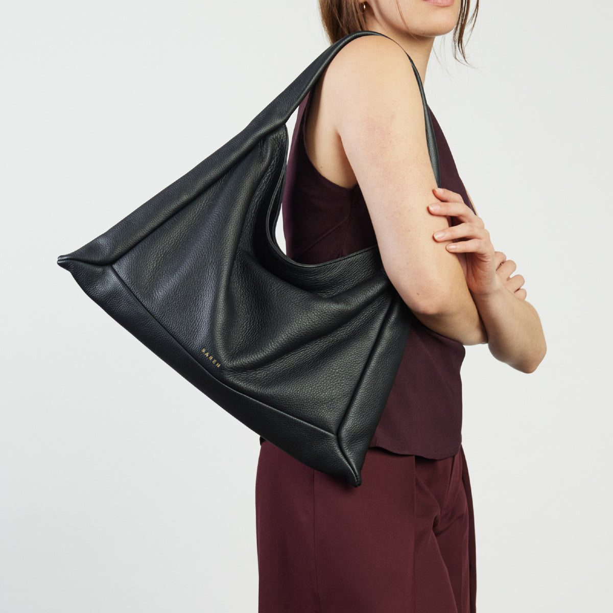 The innovative construction features one continuous panel corner-to-corner that forms the shoulder handle, elegantly surrounding the bag's entire seamless body. This considered design distributes weight evenly while hugging close to your frame, ensuring comfort even when filled to capacity. It's luxury that works as hard as you do.