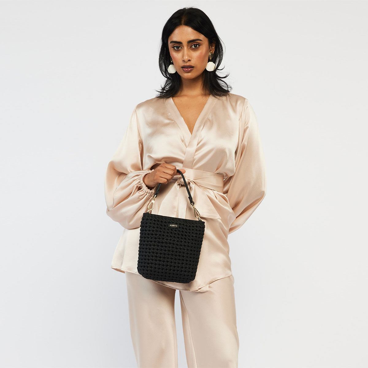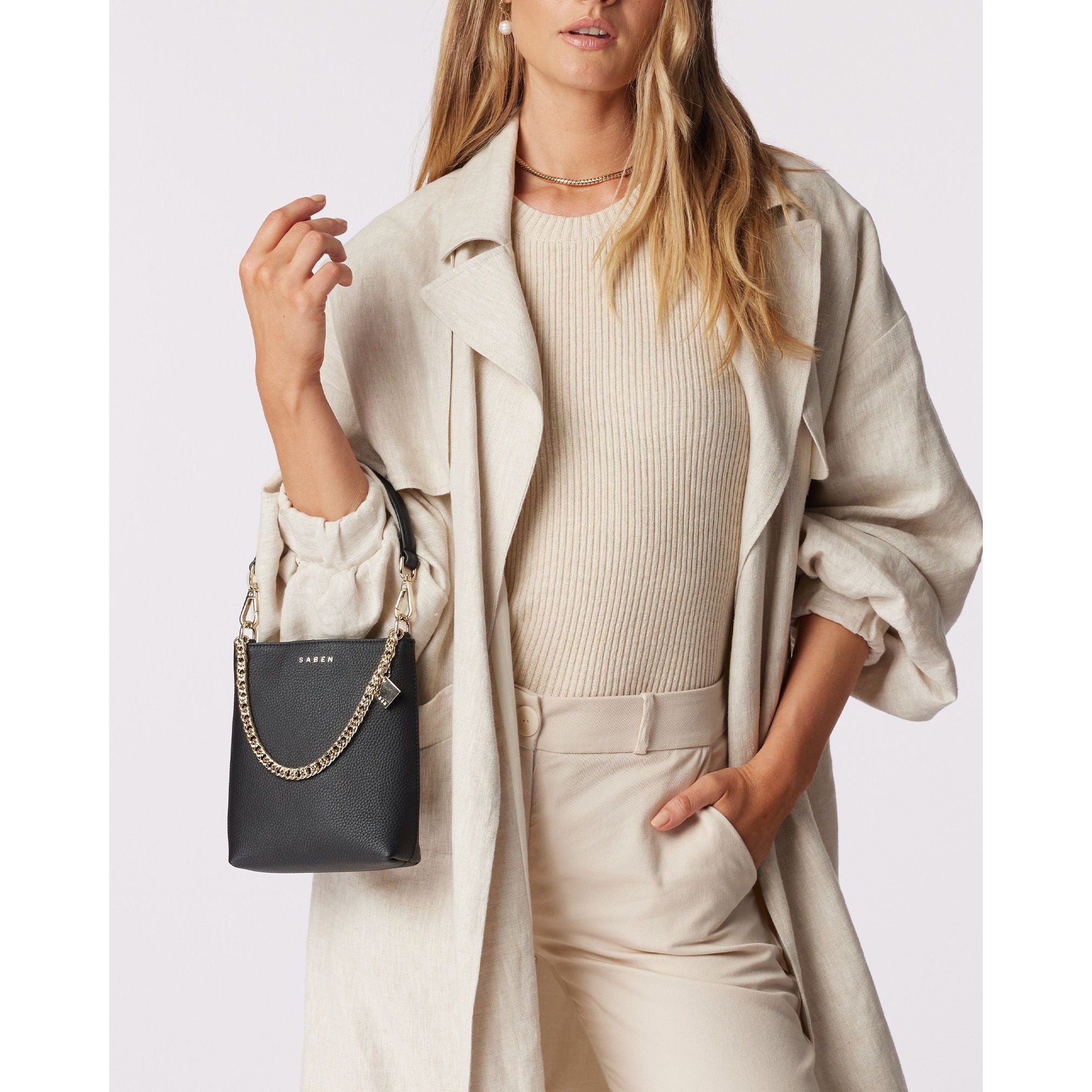 Meet Coco. Saben’s must-have mini bag with extra sass. Big enough to hold your wallet and phone, but small enough to be elegant arm candy at your next event. She offers multiple ways to wear for handsfree dancing or traversing the city. Some colours come with a fixed gold curb feature handle; others are not.