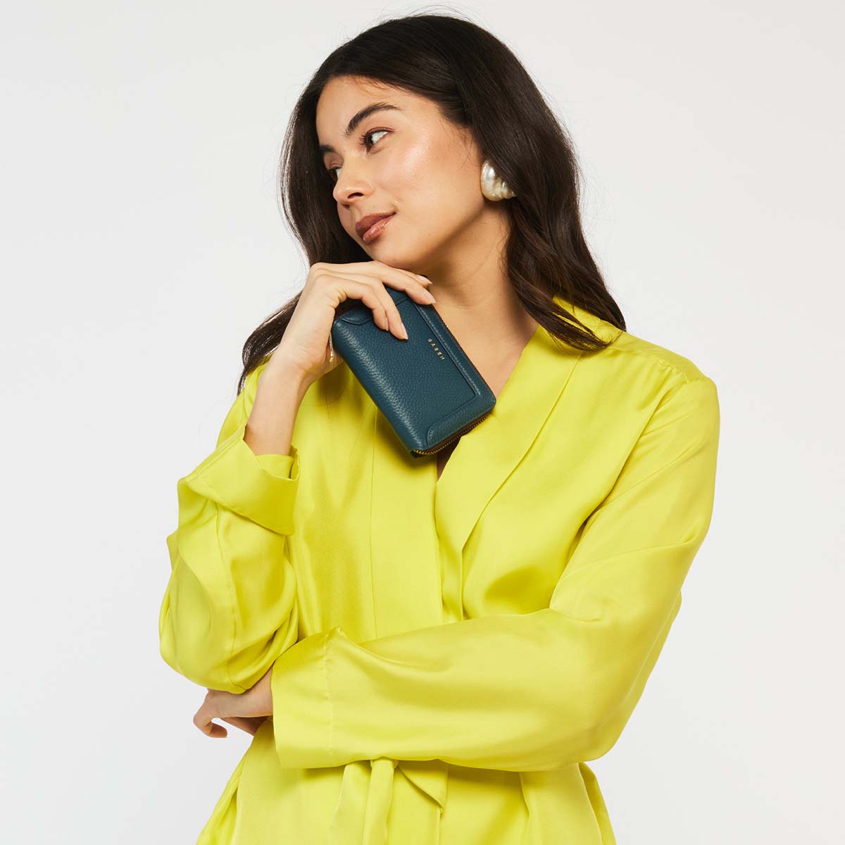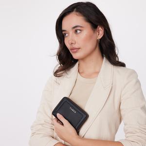 Small-but-mighty, Landry has 8 sleek card slots, one note pocket, and a built-in zip pocket to keep your coins, bobby pins and that rogue earring locked and lovely.
