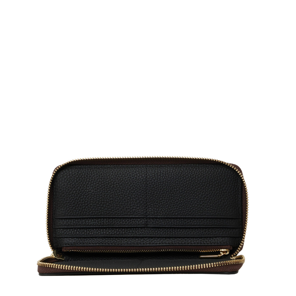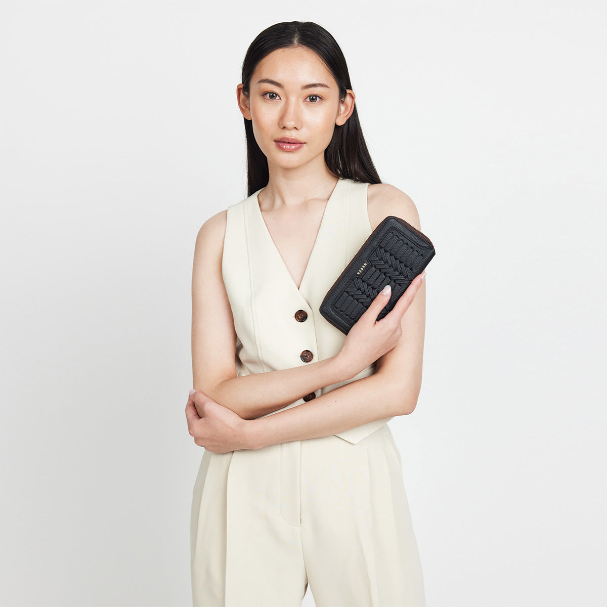 With 10 sleek card slots, two note pockets, and a built-in zip pocket to keep your coins, bobby pins and that rogue earring locked and lovely.