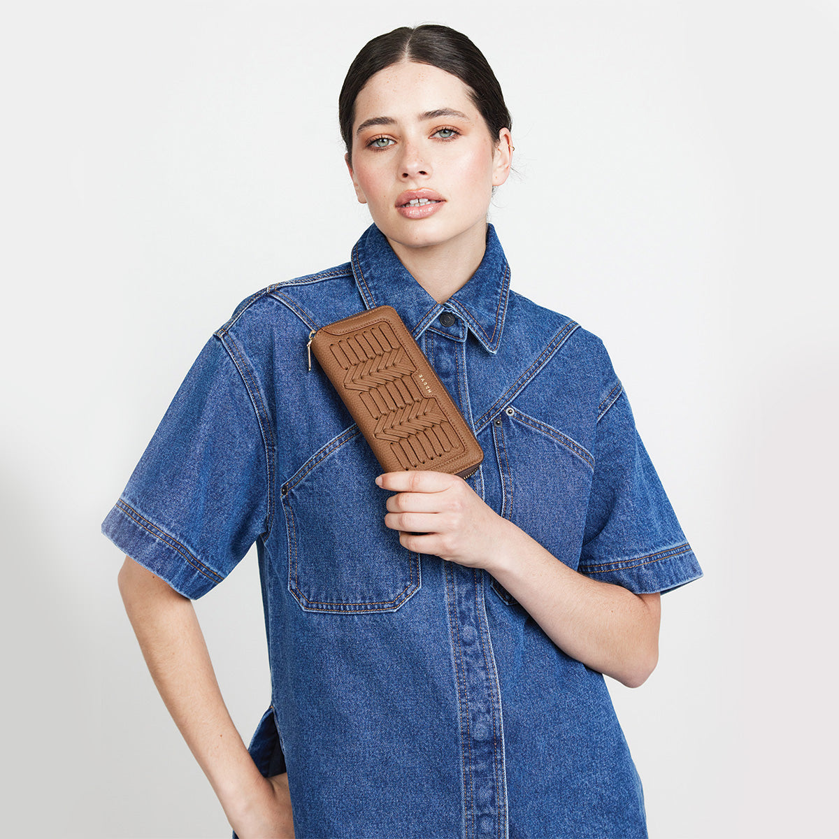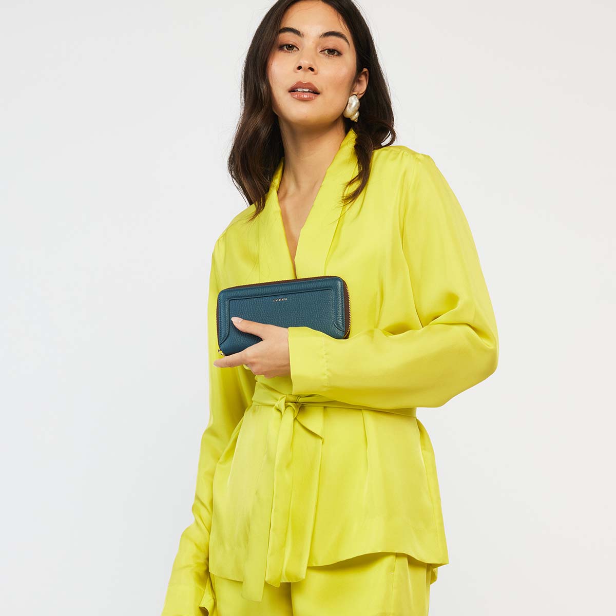 Lyric’s zip mouth allows for easy access, allowing her to be opened flat like a book and makes finding cards a breeze. Front leather frame detailing is the crown on top of this future classic.