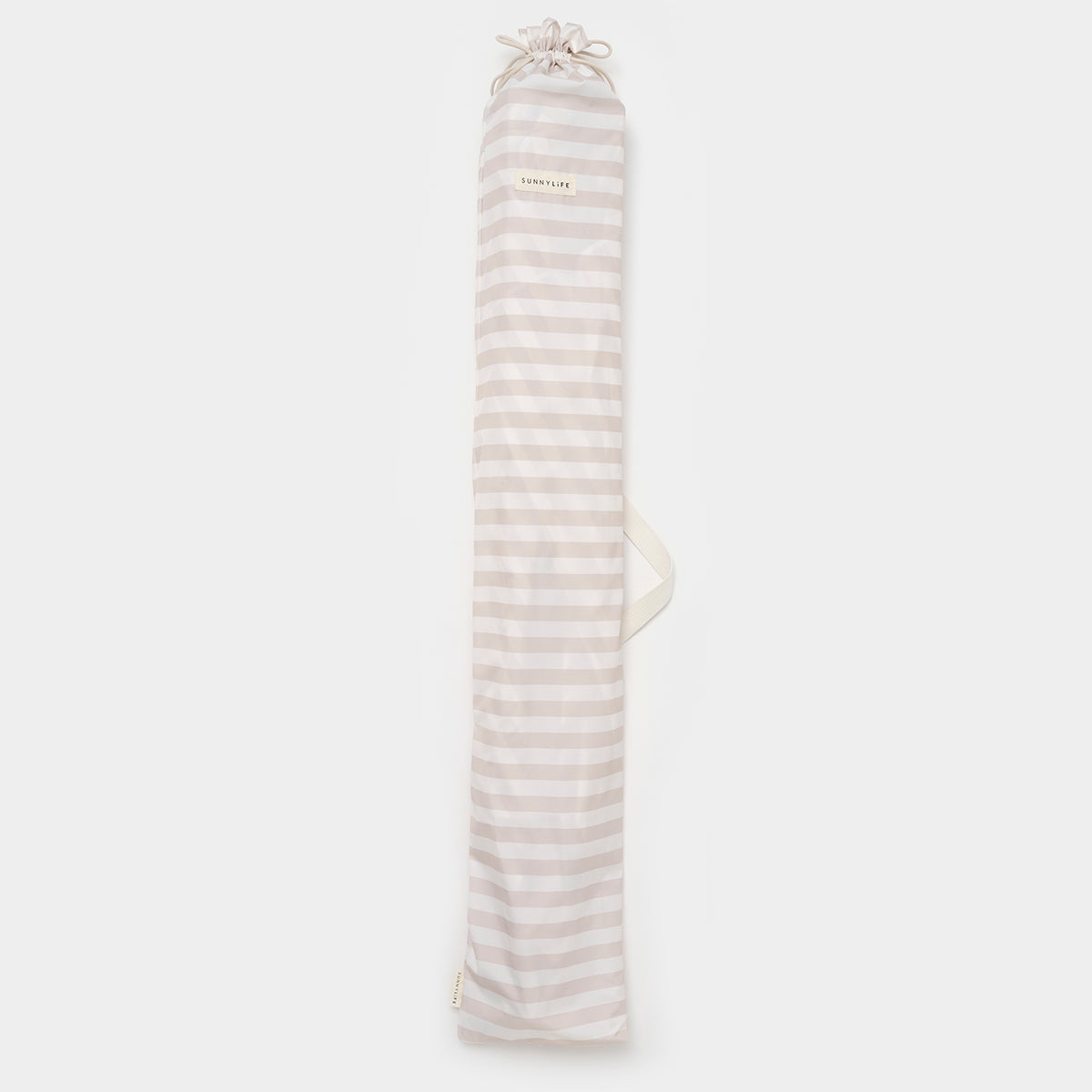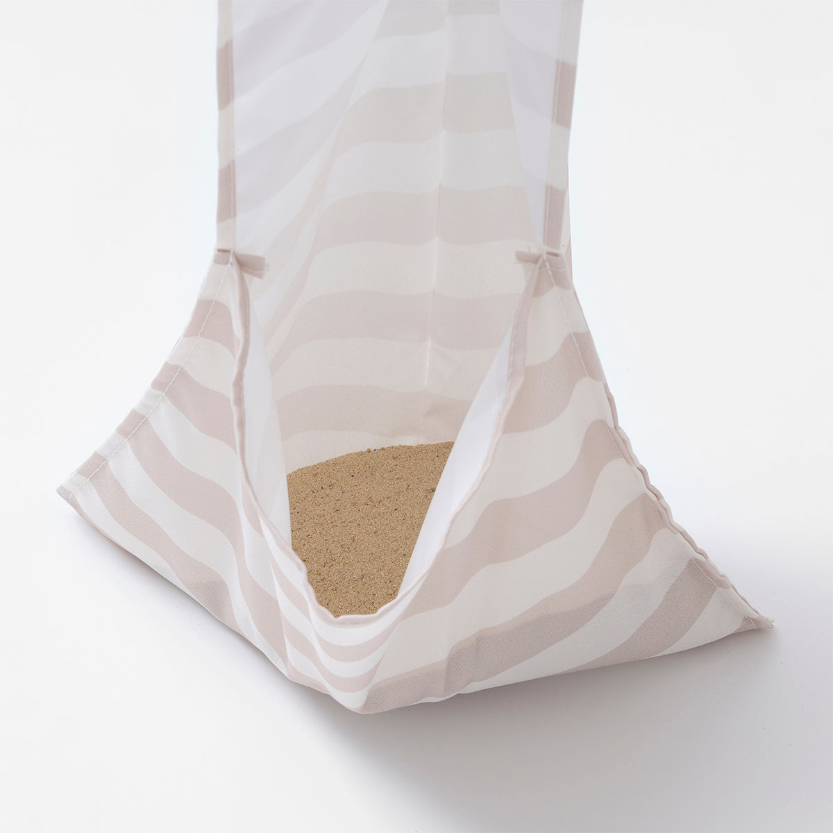 Improved stronger fibre glass frame.Includes x1 pole, x4 fabric legs with sand feet for stability, and x4 storage pockets with eyelets for sand drainage.