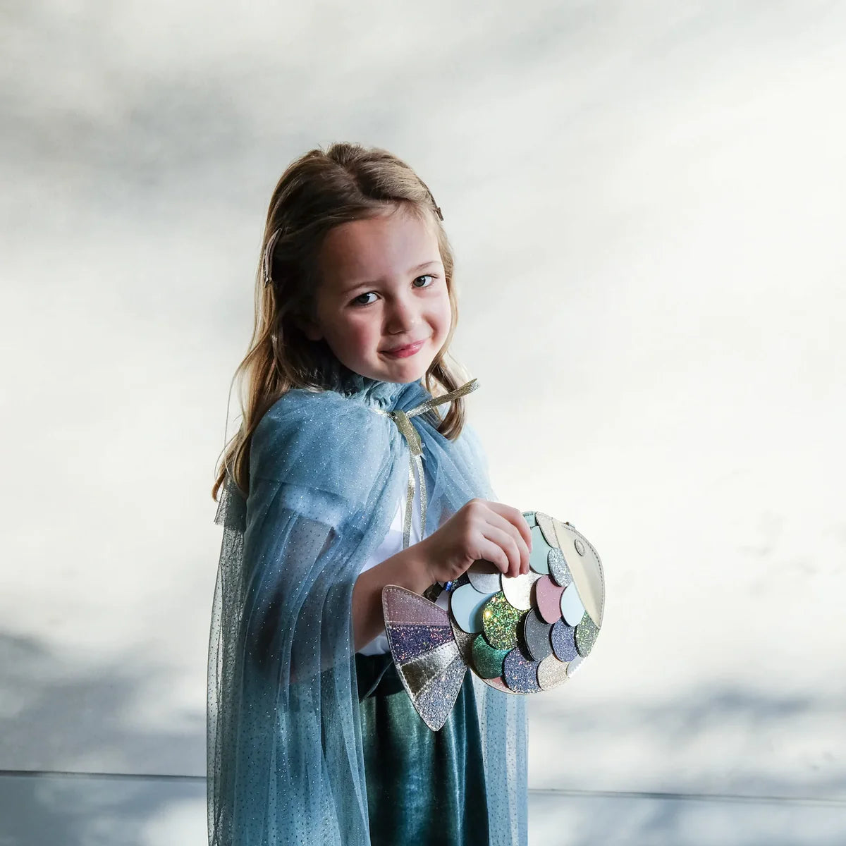 Channelling all of the beauty of the underwater world, this bag is a made from a mesmerising mix of colours and finishes and completed with an iridescent strap.  If your little one is a little mermaid wannabe then we can't think of any better companion!