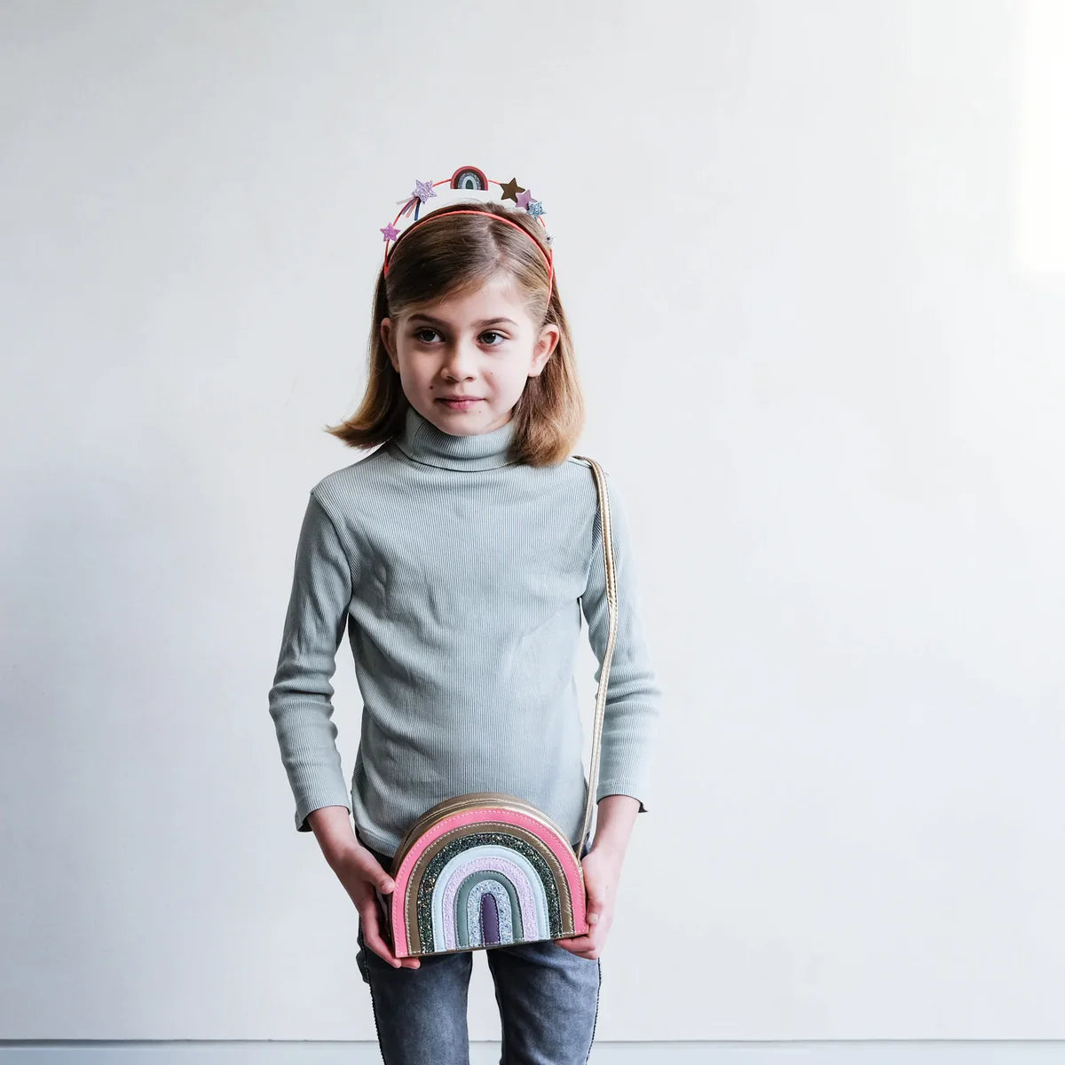 Add some serious sparkle to their outfit with our brand new Space unicorn rainbow bag! Crafted from the prettiest mix of glitter and matt metallic fabrics, this super fun bag is sure to brighten up any dull day!
