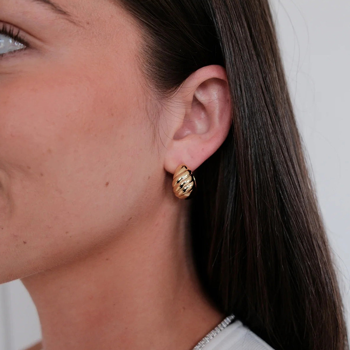 Bold yet refined, the Bronte Hoop is a chunky, sculptural style with a soft twisted finish. Its high-polish gold surface catches the light beautifully, adding vintage elegance to any look. A statement piece that’s surprisingly lightweight and comfortable for everyday wear.