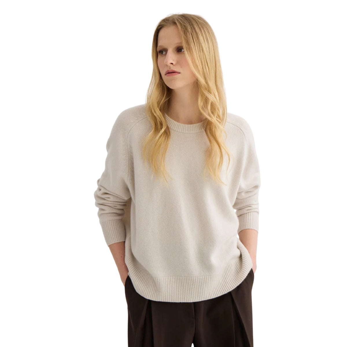 | The ultimate layering piece—substantial enough to stand alone, elegant enough to elevate everything it touches. Crafted from 100% Grade A cashmere in a heavier 9-gauge knit, this women's oversized cashmere sweater offers exceptional warmth without bulk. The relaxed, slightly dropped shoulder through a saddle shoulder and generous silhouette create that coveted lived-in luxury feel, while ribbed cuffs and hem provide subtle structure. Black works effortlessly with everything in your wardrobe—pair it with tailored trousers for sophisticated casual dressing or layer over shirts for added warmth and texture.—pair it with tailored trousers for sophisticated casual dressing or layer over shirts for added warmth and texture. Key Features: 100% Grade A cashmere OEKO-TEX® Certified Heavier 9-gauge knit for substantial warmth Oversized, relaxed fit with dropped shoulders Ribbed crew neck, cuffs, and hem Hand wash or dry clean. For tips on how to care for cashmere see our Care Guide Model is 5'10", size 8, wearing size Small |