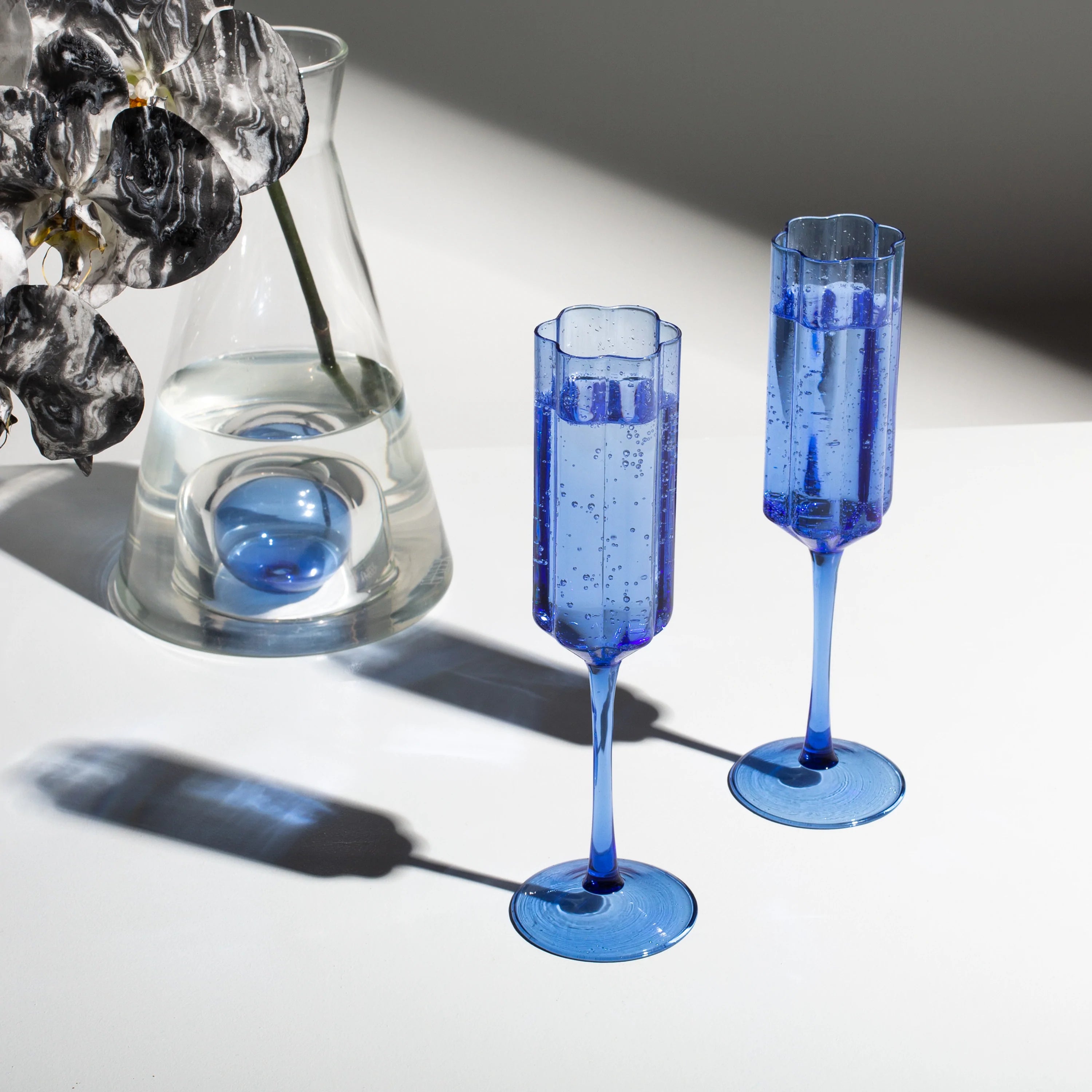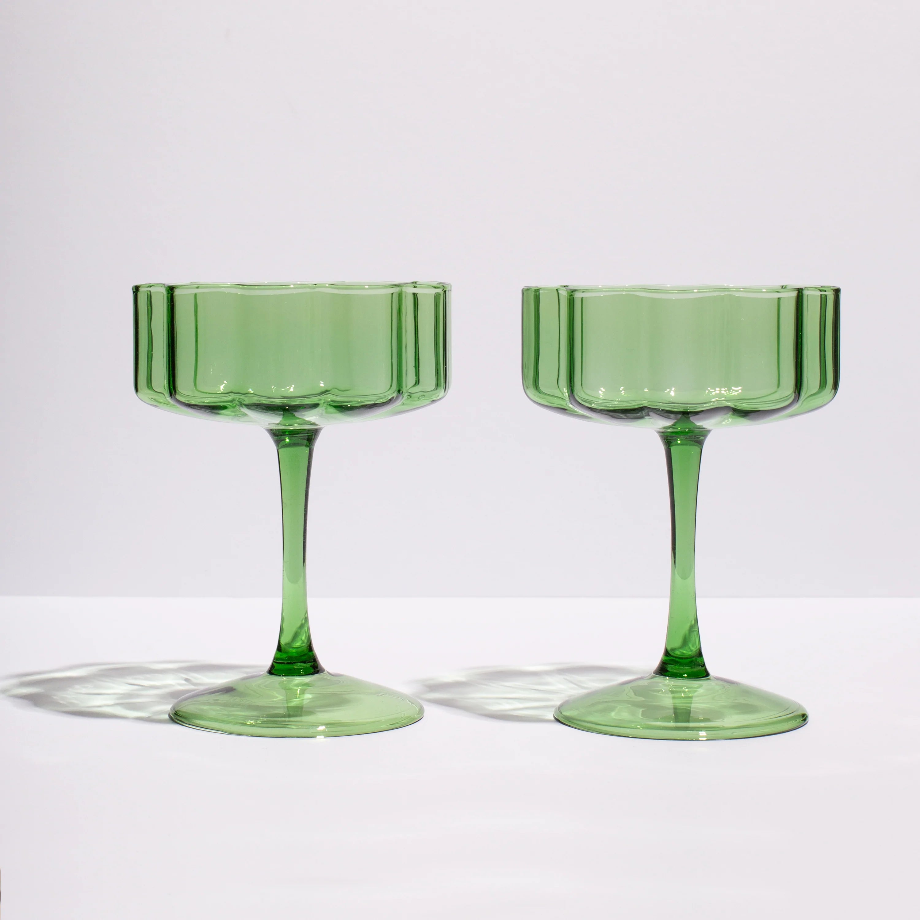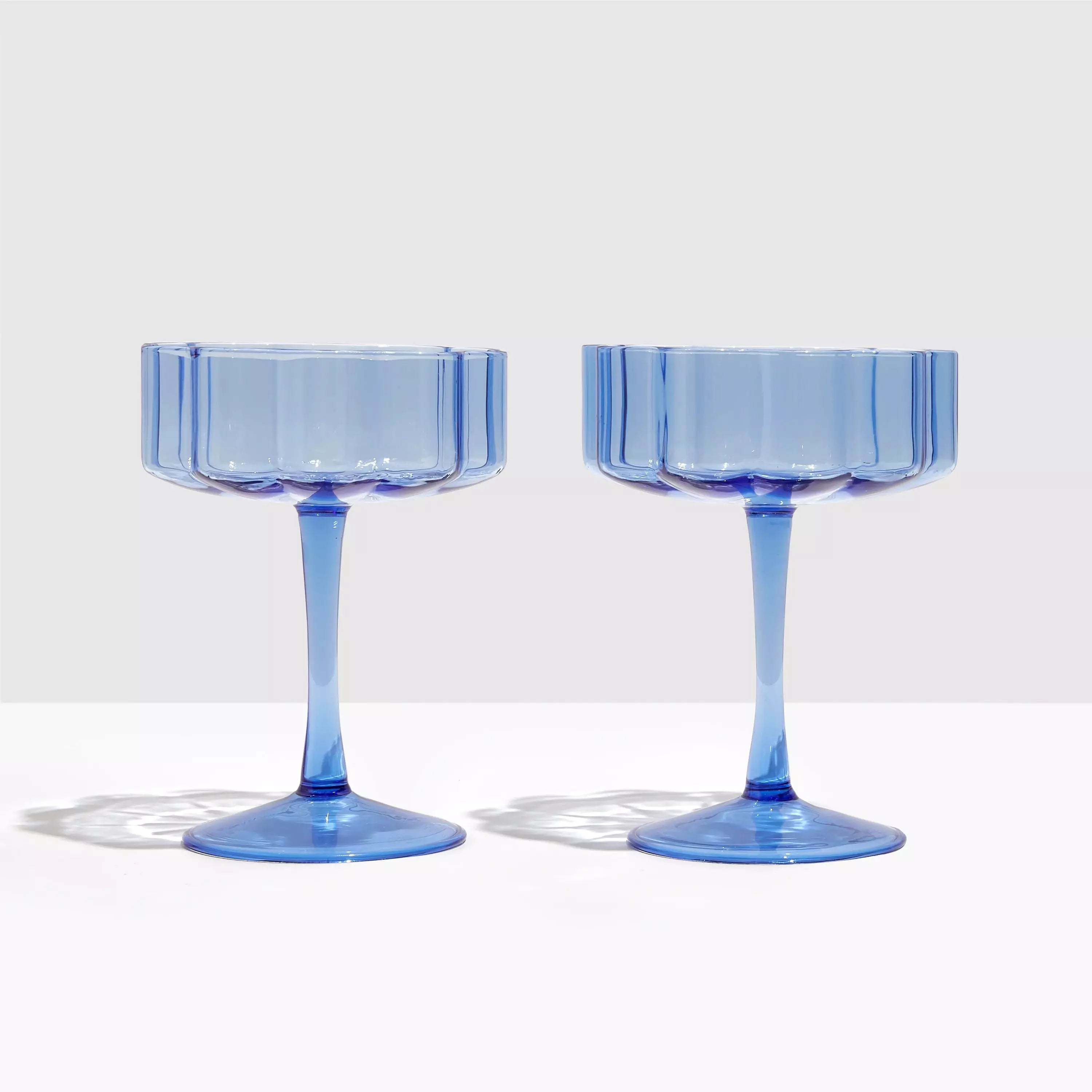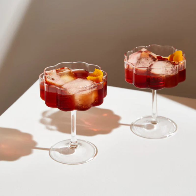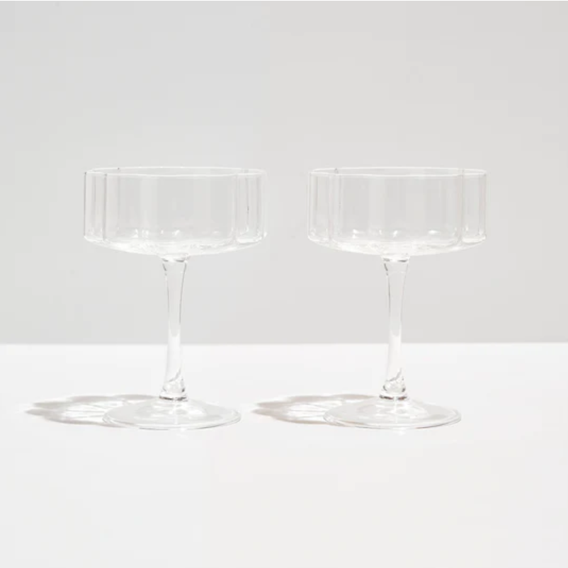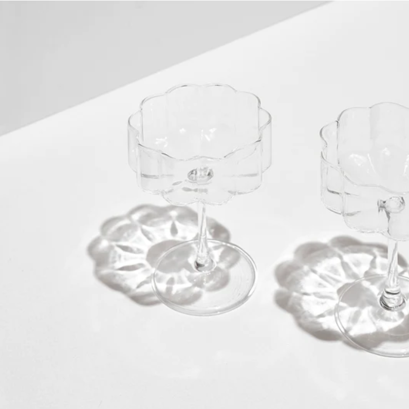 A modern and playful reimagining of a glassware classic. Featuring an elegant, elongated stem and wide bowl embellished with beautiful signature rippled edges. These hand blown glasses are the ultimate vessel to serve your favourite sparkling varietals, decadent cocktails or delicious desserts.