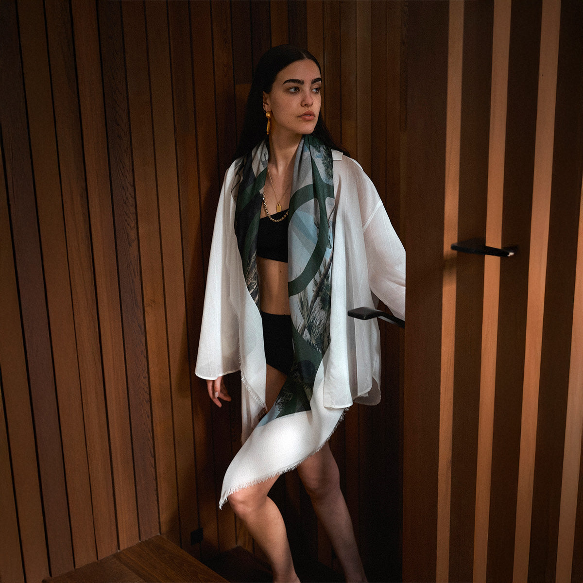 135 x 135 cm | 15% silk 85% modal | Dry clean only