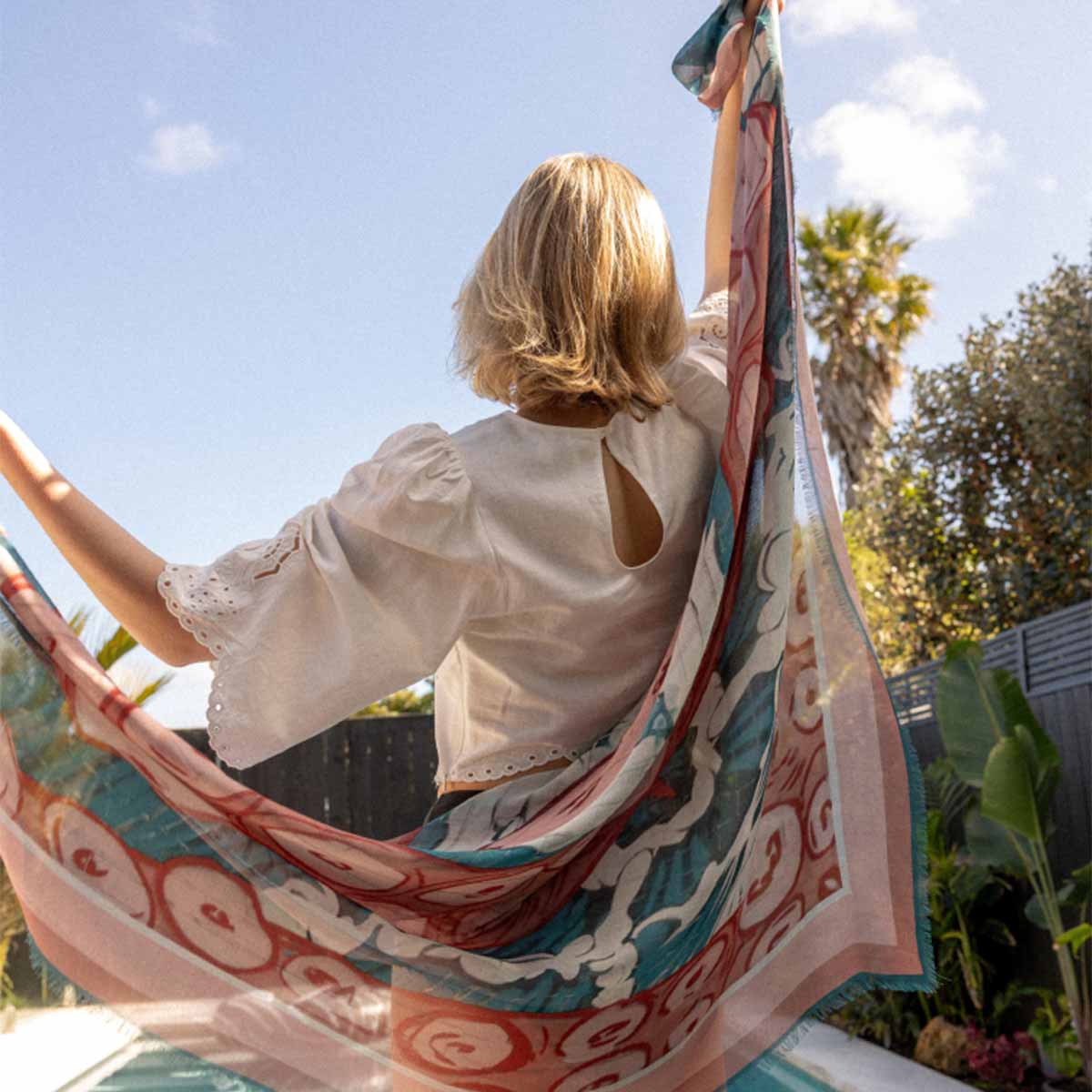 NEW for this season these versatile silk/modal large squares are your everyday saviour, permeated with vibrant colour and emotive form, for any wardrobe occasion. Each piece is carefully finished with a bold border and hand frayed hem, before being wrapped in our custom GOOD&CO gift packaging.