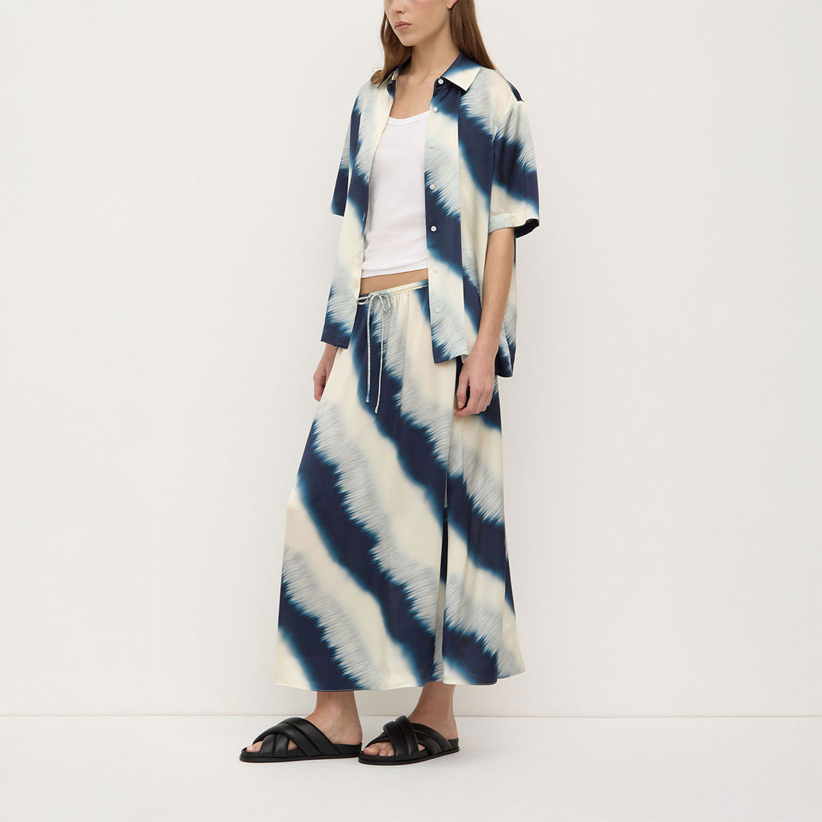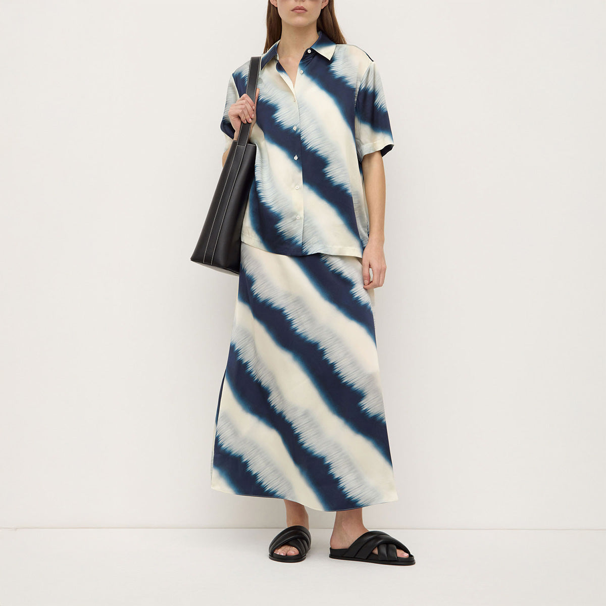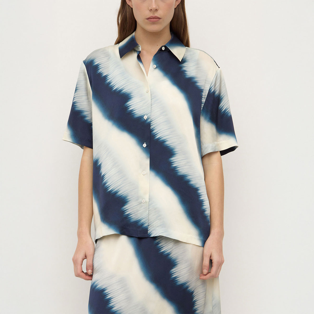 Crafted from a premium satin silk, this short sleeve shirt features a statement tie dye print. Designed to fit true to size, it can be paired with the matching Marabella Silk Skirt for a matching look.