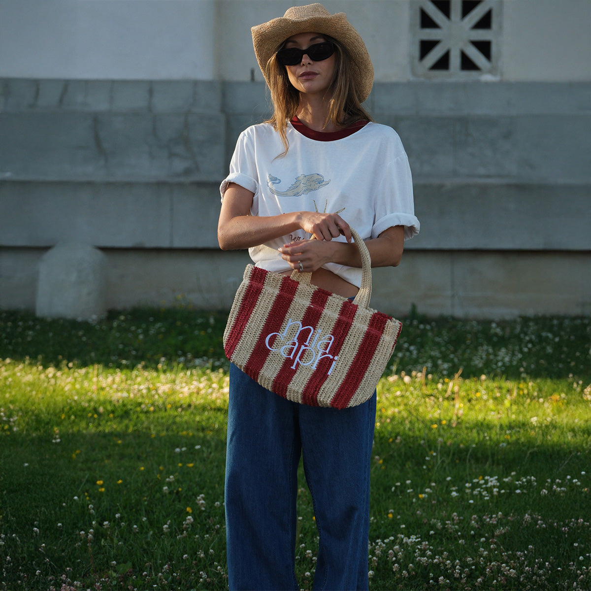 The bag of many destinations: One tote, endless possibilities. Whether you're packing sunscreen and a good book for a beach day or stashing fresh produce from the market, the Mia Capri Vacay tote effortlessly adapts to your every need.  Available in Navy, Green & Pink.