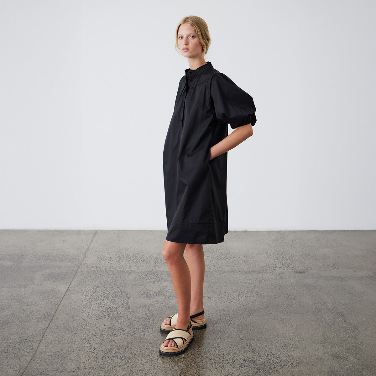 The Mila Dress - Black is made from crisp cotton poplin and is the perfect dress to throw on for on-the-go errands with your favourite sneakers or add a heel for warm summer evenings out.