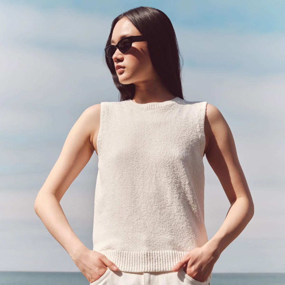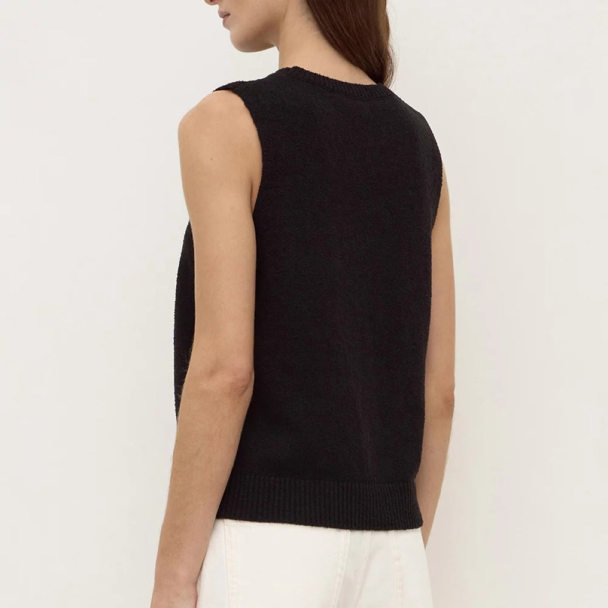 The Palma Knit Vest is a 100% cotton vest with ribbed crew neckline, armholes and hem.