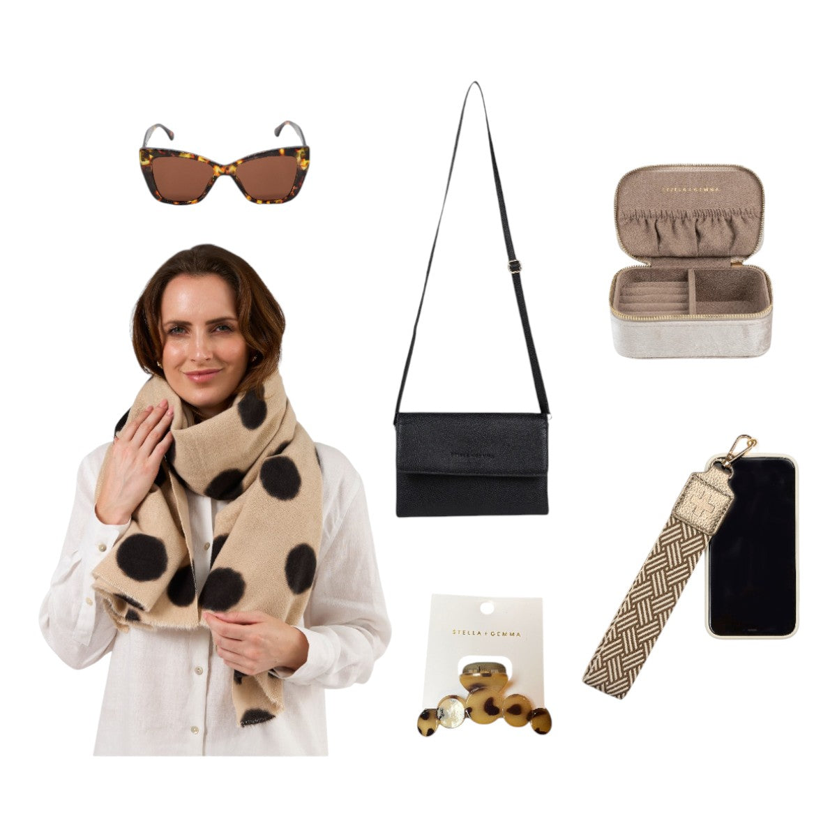The Stella + Gemma x Hedgerow Celebration Box includes a selection of scarves, sunglasses, bags, hair claws, phone accessories, jewellery boxes and socks (Each box has a different selection of product).