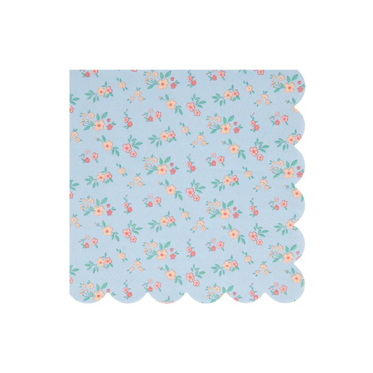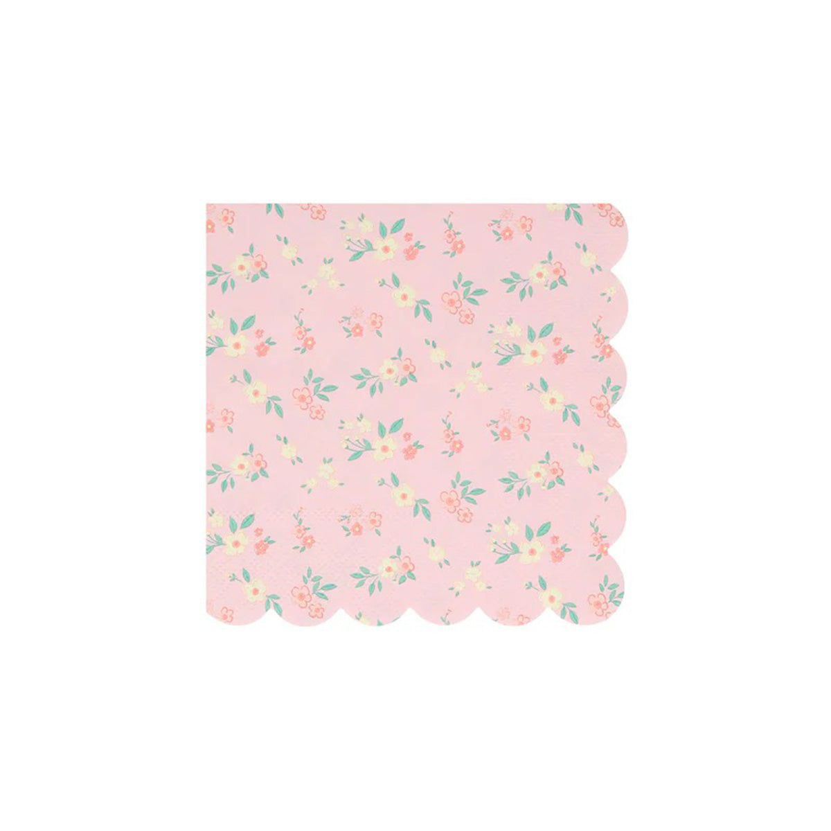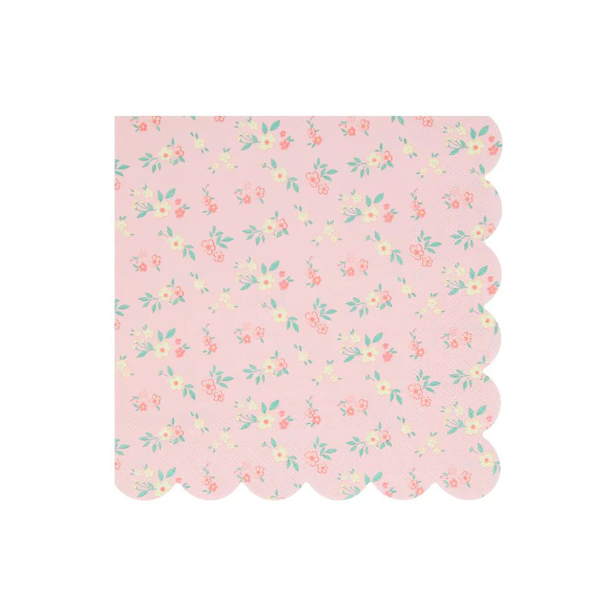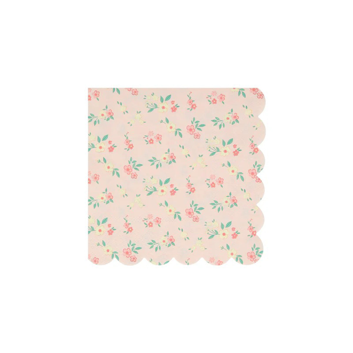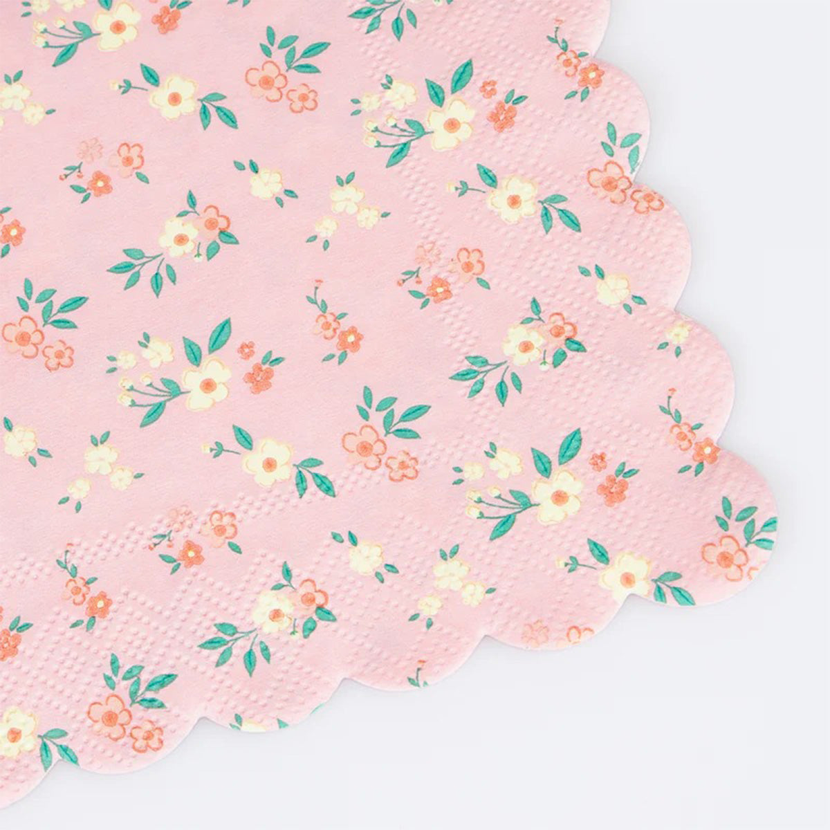 Ditsy floral clusters add effortless elegance to any setting. This classic design is influenced by fashion-forward floral pattern trends, with a scalloped border for a stylish look. The four different vintage color ways, of pink, peach, mint and blue, in this large napkin set are perfect for afternoon tea, garden parties, bridal showers or baby showers.