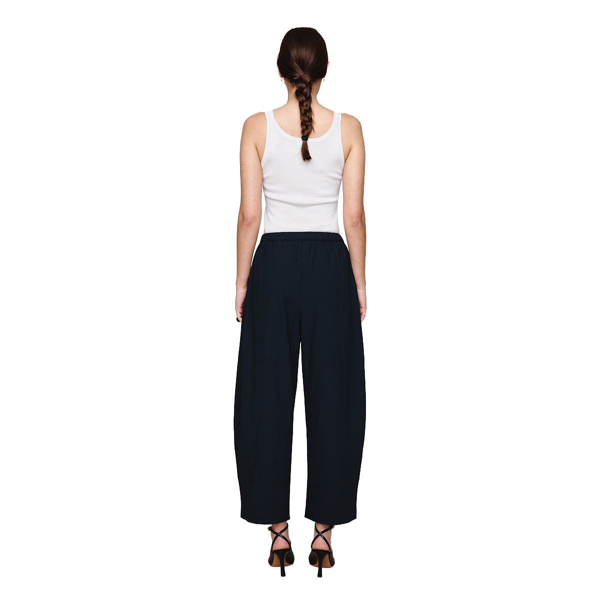The Wilken pants are crafted from a lightweight, textured 100% cotton with a softly crinkled finish. They feature a relaxed shape with a full, rounded leg that tapers gently towards the hem, creating an elegant yet effortless shape. Designed with comfort in mind, they have an elasticated waistband for an easy fit and subtle side seam pockets for everyday wear. A refined, elevated essential that pairs seamlessly with both structured and soft separates.
